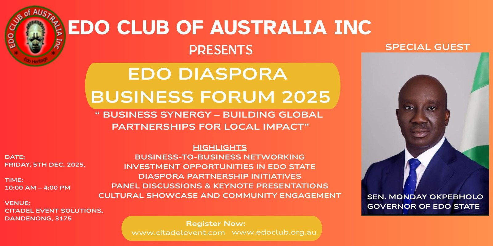 The Edo Club of Australia Inc. proudly presents the Edo Diaspora Business Forum 2025, a landmark event designed to strengthen...