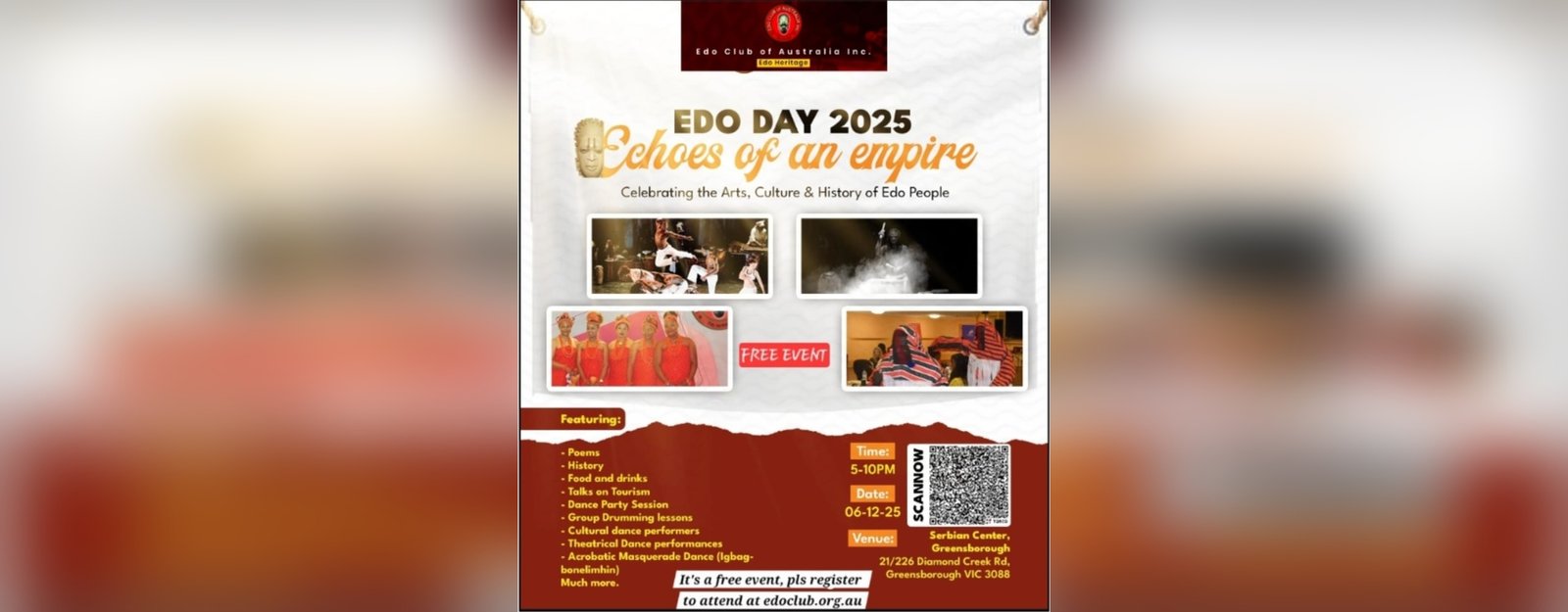 Welcome to the Edo Club of Australia. We are a not-for-profit organisation and our mission is to provide a platform for interaction, networking, education and capacity building for Edo Heritage living in Australia. We also work in collaboration with other communities in Australia at large to achieve mutual goals while promoting the image of Edo and Nigeria.